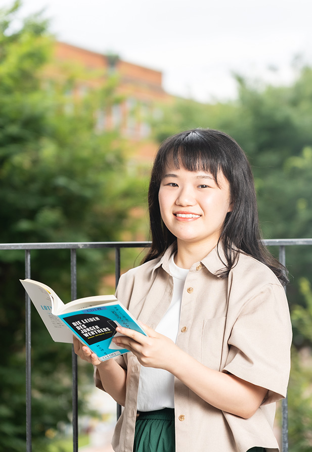 文学を含めドイツ語圏の文化は、意外と私たちの日常にも潜んでいます。ドイツ文学科ではそれを一層知りたくなる刺激的な授業が多くあります。ドイツ語を学んで終わりではなく、言語の学びを起点として文学、芸術、言語について体系的かつ多面的に学ぶことができます。ドイツ語をもっと話したい、理解したいと思うのであれば、タンデムに参加してみたり、留学に参加してみたりいろいろ自分で積極的に行動できることがドイツ文学科の魅力かなと感じています。