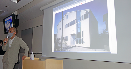 建築デザインにおいて先生が重要視されているWindow(窓)、Frame(フレーム)、Flow(流れ)の3つのコンセプトについて、先生が手掛けられた建物の写真を見ながらお話を伺いました。