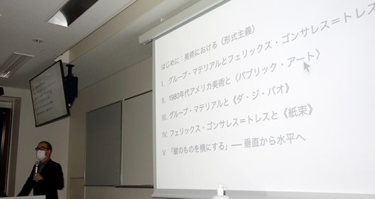 色・形を重視するフォーマリズムと各ジャンルの独立を提唱するモダニズムとが結び付いて生まれた、物語性・宗教・政治から切り離した純粋な〈かたち〉に向き合うという考え方に対し、批判的な立場を取ったフェリックス・ゴンザレス=トレスと、彼が所属していたグループ・マテリアルの活動の軌跡を辿りました。