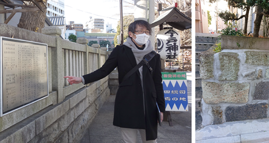 残存する吉原遊郭の石垣の一部(写真参照)や、遊女たちが信仰した吉原弁財天、浄閑寺にある遊女慰霊碑(新吉原総霊塔)など、悲しい歴史に思いを馳せさせる様々な出会いがありました。