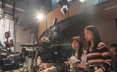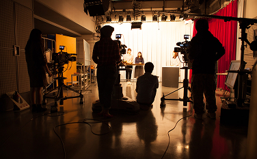 デジタルメディアで誰もがつながる時代に入り、テレビや映画だけでなく、新聞、出版、ネット、広告、エンタメなどあらゆる業界で「映像」で伝える実践の重要度は増すばかりです。新聞学科ではテレビセンターが行う演習が1年次の必修科目で、グループに分かれて「1分間のテレビ番組」を作ります。2年以降も「テレビ制作Ⅰ」「テレビ制作Ⅱ」というカリキュラムが組まれ、引き続き映像表現の基礎を学ぶことができます。