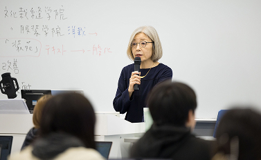 学科では、メディアの社会的機能や影響、その歴史、制度など、メディアやジャーナリズムの理論的内容に関する科目と、報道英語やテレビ制作など、体験的にメディアを理解していく実践的な科目をバランスよく配置しています。理論に偏することも実践に偏ることもない幅広い教育を行い、これまで多くの学生を育ててきました。2016年度からの定数増(80名→120名)にともない、「メディア・コミュニケーション」、「ジャーナリズム」、「情報社会・情報文化」の3つのコースを設定します。
