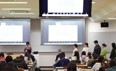 新聞学科では、4年間の学びの集大成として、卒業論文を執筆し、提出することが求められます。学生は、メディアや社会に関わる関心をもとに、自ら問いを立て、調査・分析を行い、論文としてまとめます。テーマは、新聞・テレビ・雑誌・ラジオ・SNS・広告・PRから政治・文化・社会問題まで幅広く、報道分析、コンテンツ研究、インタビュー調査、メディア利用行動調査など、多様な研究が行われています。