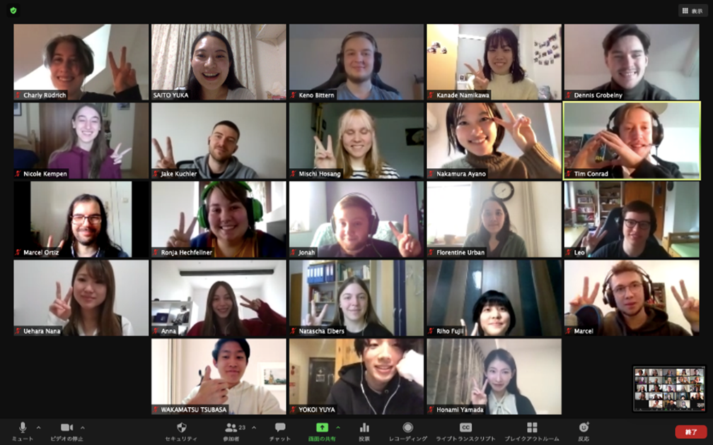 春学期に開始する、上智大学のドイツ文学科の学生が毎回担当となり日本語をメインとして言語交換を行うJapanexpressコースとデュッセルドルフ大学の学生がドイツ語をメインとして言語交換を行うGermanexpressコースがそれぞれオンラインで企画されると、参加者総数60名をこえる大きな日独交流プラットフォームが出来上がっていました。