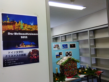 ドイツ文学科では昨年度同様、アドヴェントハウスの展示とクリスマスのお菓子の配布を行いました。部屋を訪問してくれた学生の皆さんは、興味深くアドヴェントハウスの窓を開けたり、展示している写真を見て行ってくれました。