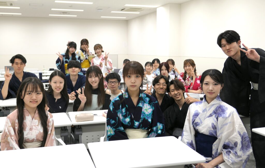 上智大学では7月初旬に<浴衣デー>を設けており、この日、希望学生は浴衣で登校します。外国人留学生も多い四谷キャンパスで、ジェンダーも国籍も関係なく、日本のカルチャーを思い思いに楽しむ学生さんたちの姿が散見されます。重要なのは、これが強制的な行事ではないこと。着たければ着る、興味がなければ着なくてよし。総じて浴衣着用率がもっとも高いのは、1年次生のようです。