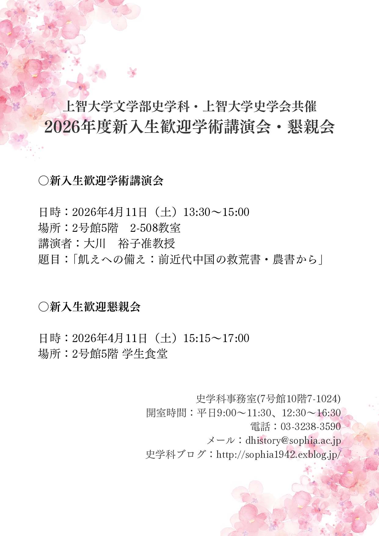 史学科新入生歓迎学術講演会&懇親会のお知らせ